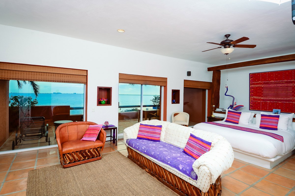 ( 2 personas ): Esta es una habitación extra grande con cama king en el segundo piso, una pequeña sala de estar y un amplio balcón privado con una vista espectacular.